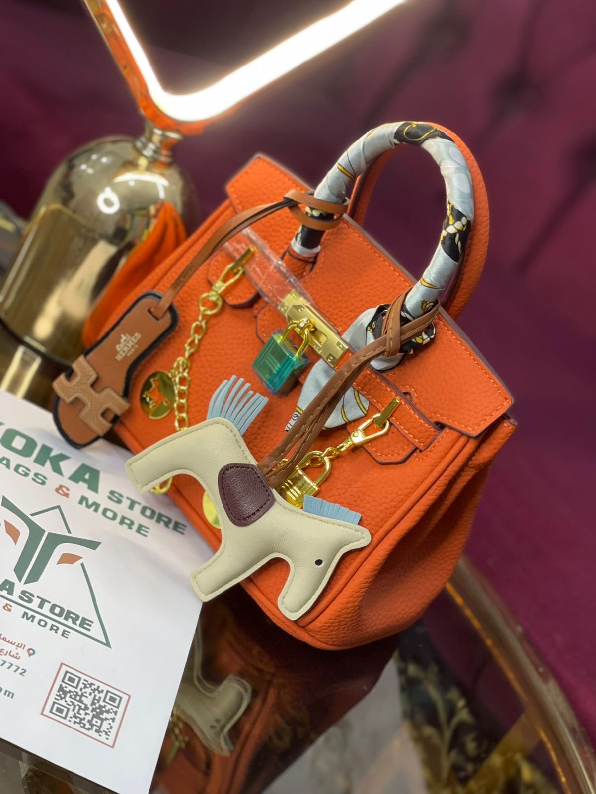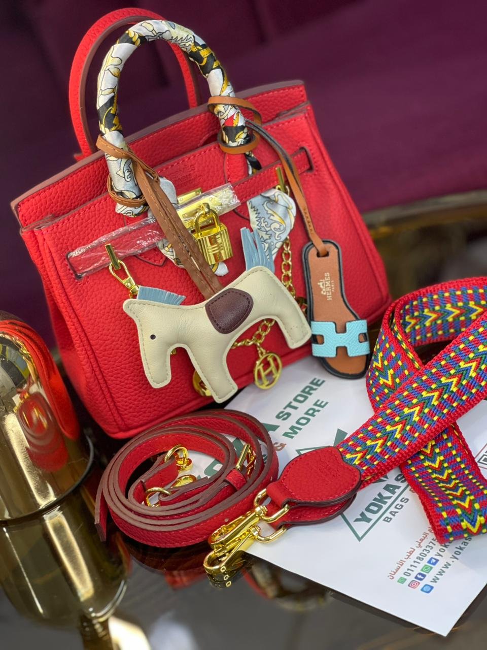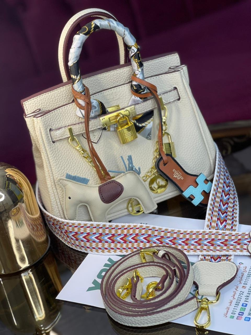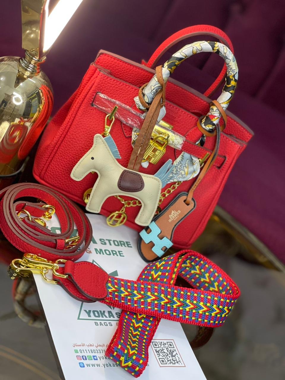 ميداليات زينة: تشمل ميدالية “الحصان” الشهيرة من الجلد، مما يعزز من فخامة الحقيبة وتفردها.