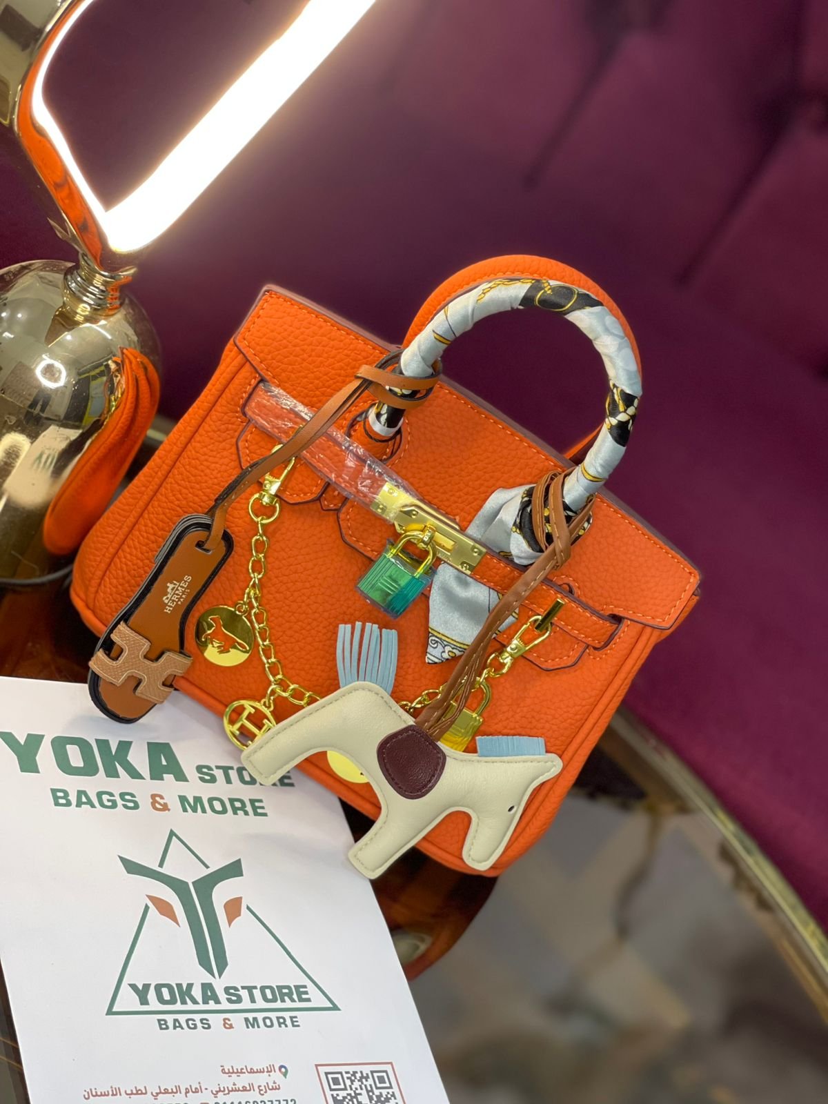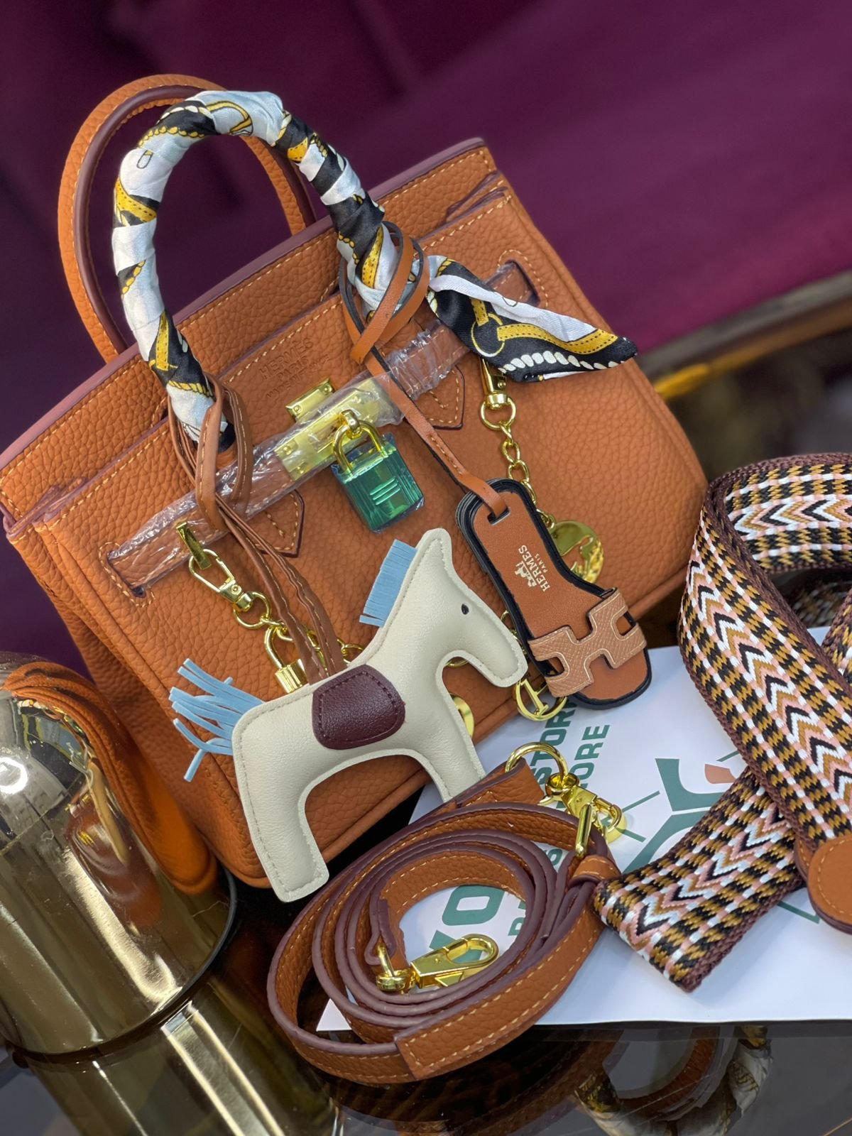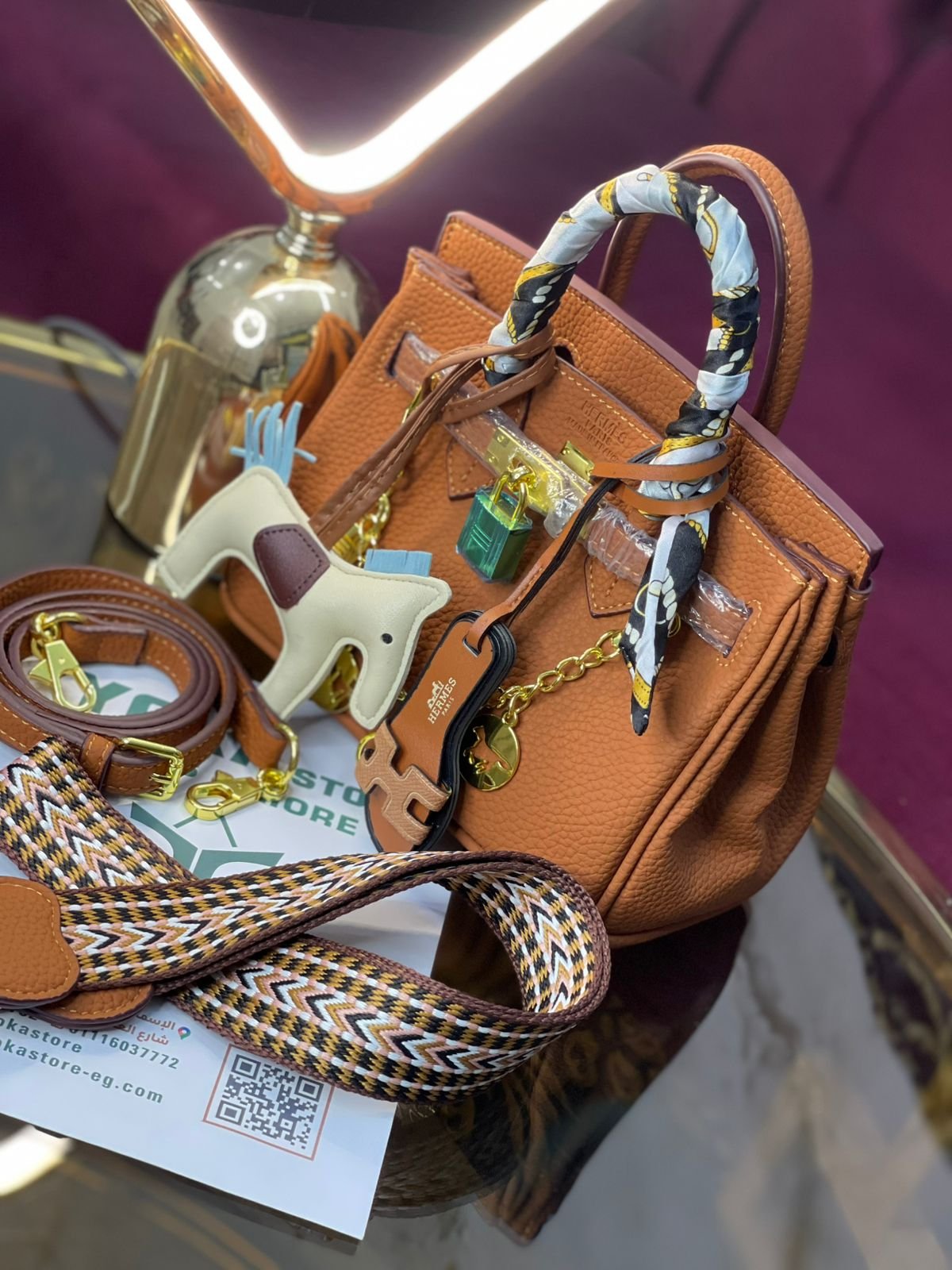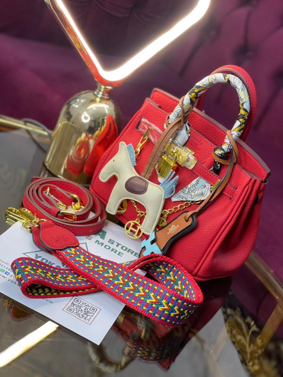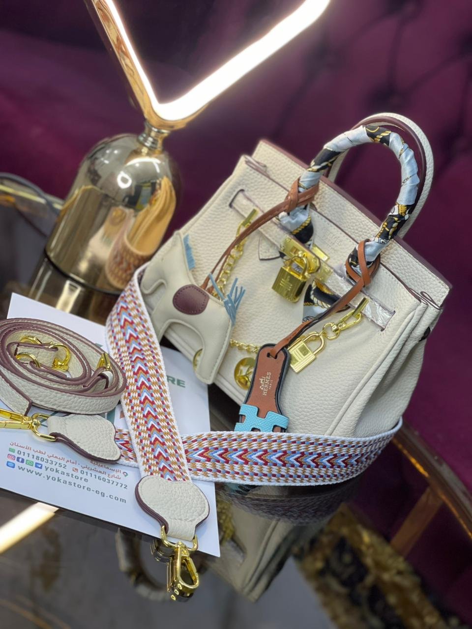 ميداليات زينة: تشمل ميدالية “الحصان” الشهيرة من الجلد، مما يعزز من فخامة الحقيبة وتفردها.