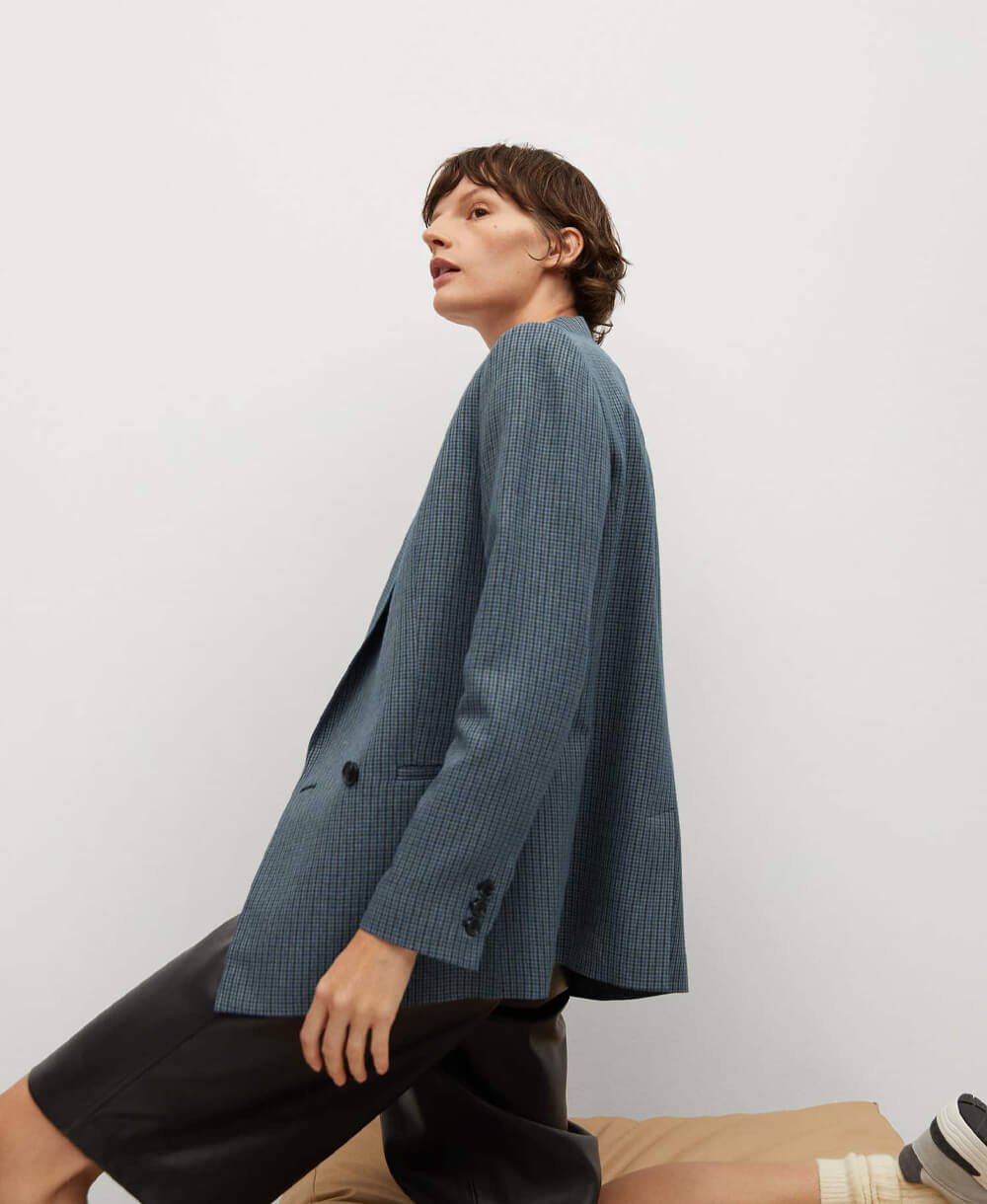 Wrap check suit jacket